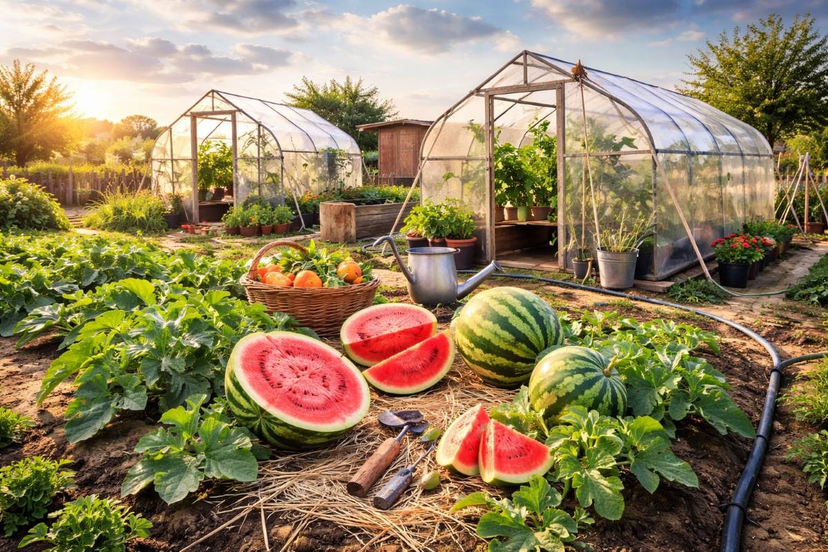 In Deutschland sind Gewächshaus oder Folientunnel oft der entscheidende Vorteil, um Wassermelonen zuverlässig zur Reife zu bringen. Beide Konstruktionen schützen vor Kälte, starken Niederschlägen und Temperaturschwankungen – und sorgen dadurch für gleichmäßigeres Wachstum, bessere Pflege-Kontrolle und in der Regel mehr Ertrag.