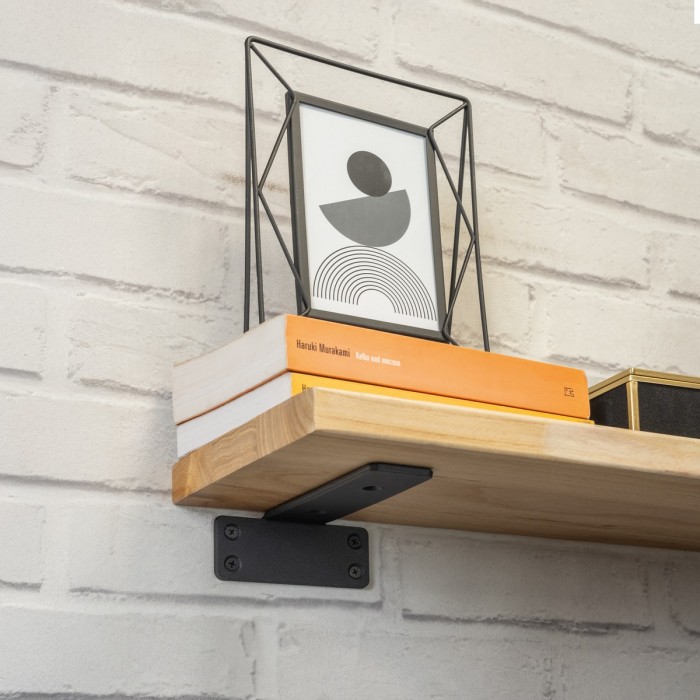 Dank seiner einfachen, aber funktionellen Form bietet der Bügel einen stabilen Halt für Regale, sowohl in Wohnräumen als auch in Büros oder Geschäftsräumen. Er lässt sich perfekt mit Holz, Metall oder Glas kombinieren, um eine elegante und zugleich dauerhafte Lösung zu schaffen. Ideal zur Befestigung von Regalen für Bücher, Dekorationen oder Pflanzen.