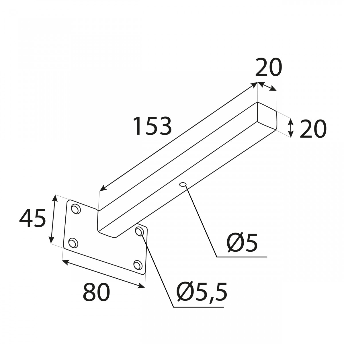 - Abmessungen: Die Halterung ist in drei Größen erhältlich: 153x80x45x3, 203x80x45x3, 253x80x45x3mm