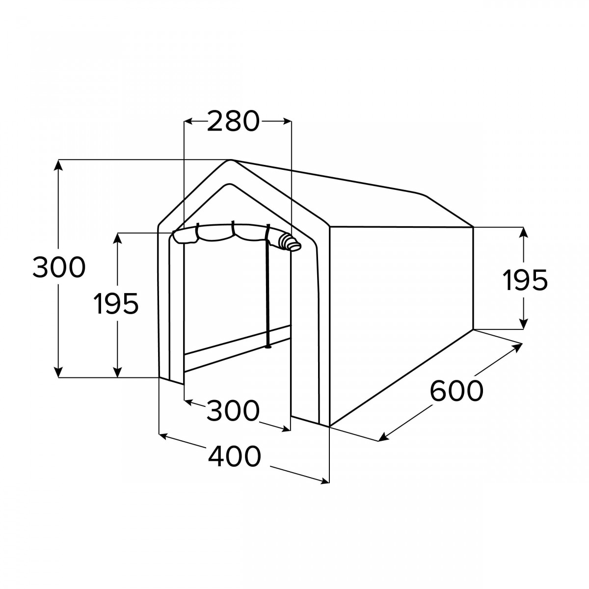 Seine Konstruktion basiert auf einem soliden Stahlrahmen, der Stabilität und Festigkeit garantiert. Das Zelt lässt sich leicht auf- und abbauen, so dass Sie es schnell verschieben und überall aufstellen können. Dank der funktionellen Tür haben Sie außerdem leichten Zugang zu Ihren gelagerten Gegenständen und Ihrem Fahrzeug.