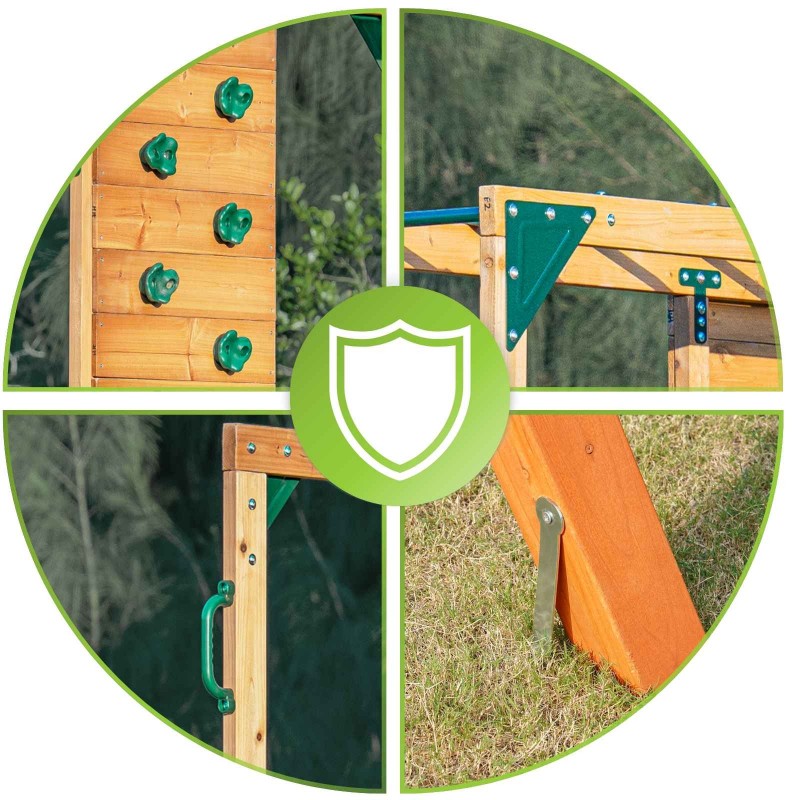 ✅ Tragkraft von 50 kg pro Station – die Konstruktion ist für das gleichzeitige Spielen von vier Kindern bei einer Gesamtbelastung von bis zu 200 kg ausgelegt.