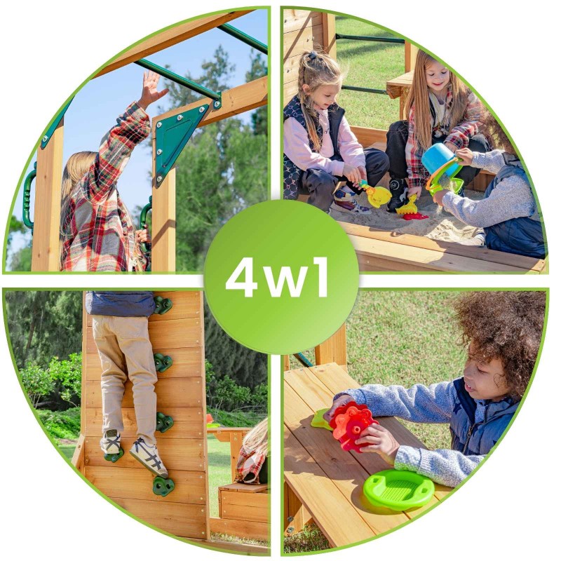 ✅ Sandkasten und Klettergerüst – ermöglichen das gleichzeitige Spielen mehrerer Kinder und schaffen Raum für gemeinsame Zeit.