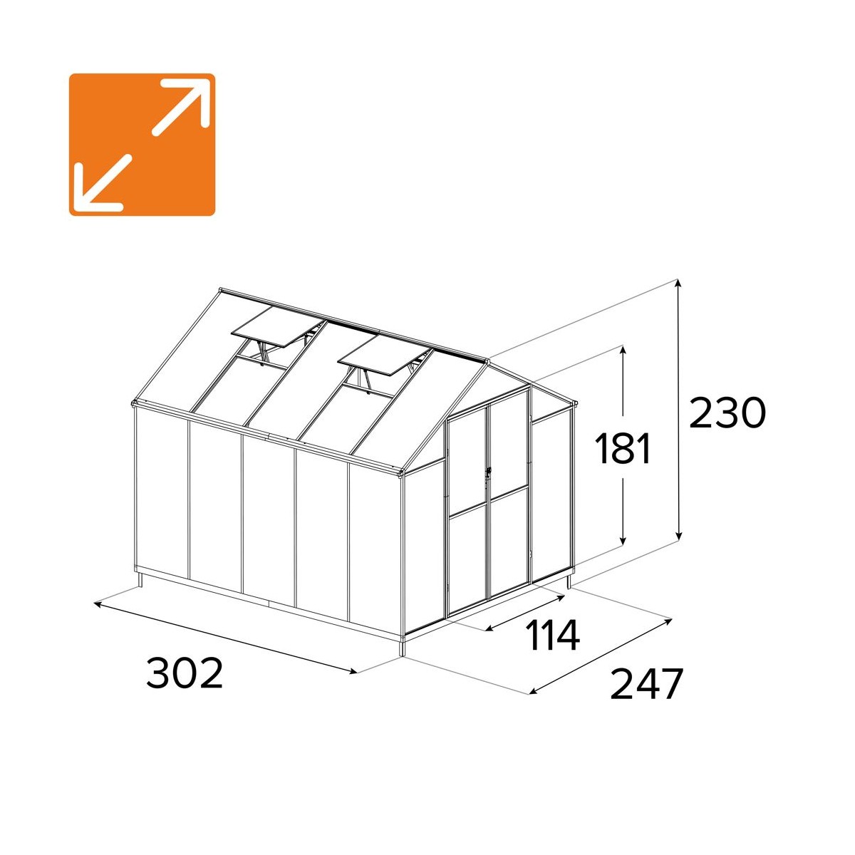 GARTENGEWÄCHSHAUS AUS 4 MM POLYCARBONAT 3X2,5 VERBENA VERSTÄRKT + FUNDAMENT