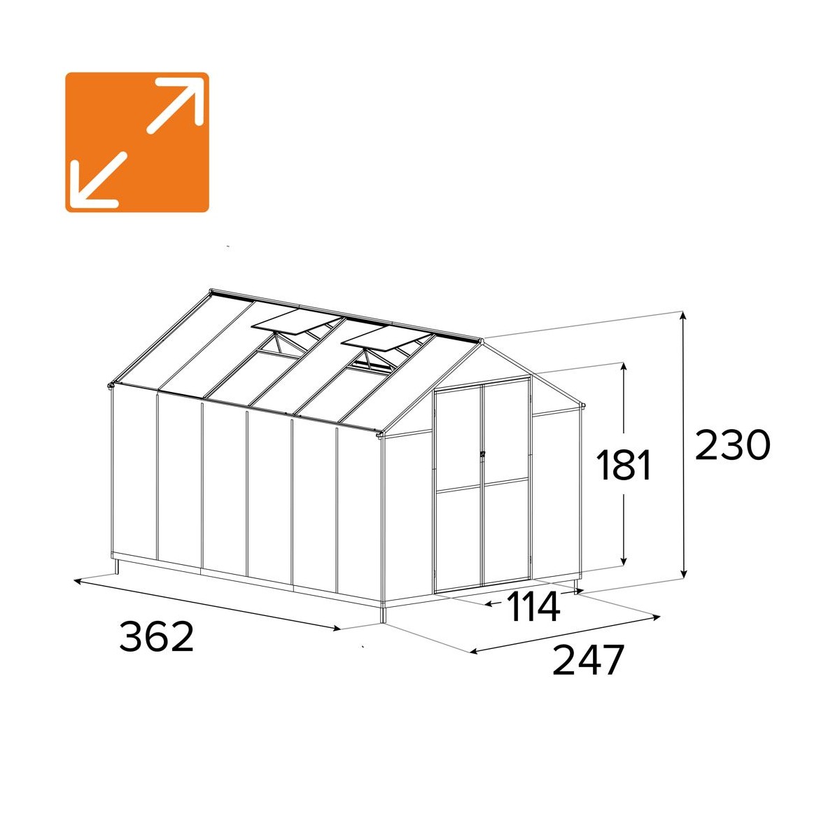 GARTENGEWÄCHSHAUS AUS 4 MM POLYCARBONAT 3,6X2,5 VERBENA VERSTÄRKT + FUNDAMENT